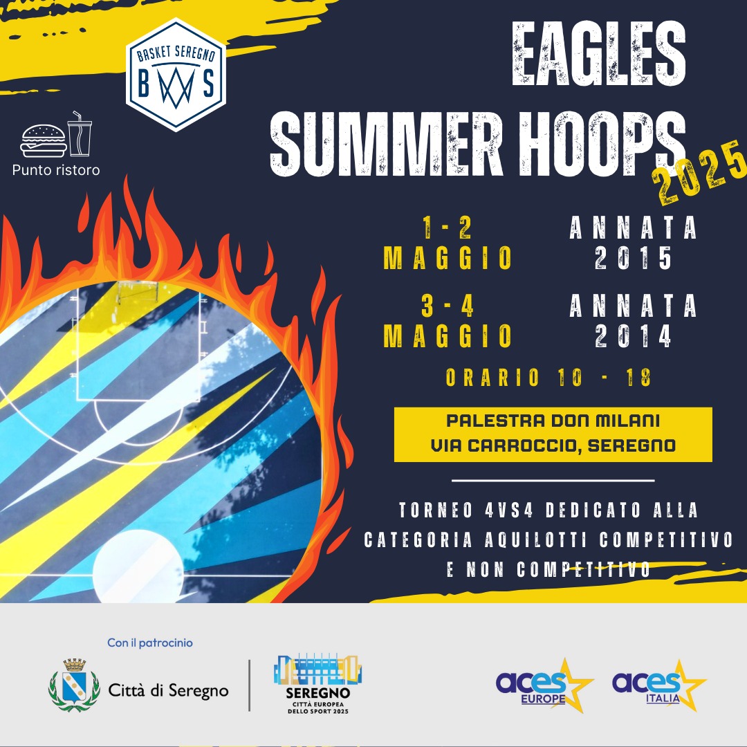 Basket Seregno organizza Eagles Summer Hoops, torneo categoria Aquilotti (atleti nati anno 2014 e 2015). Al Pala Don Milani