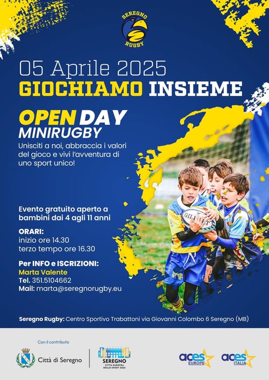 Il Seregno Rugby propone un Open Day per avvicinare al Rugby i bambini dai 4 agli 11 anni.